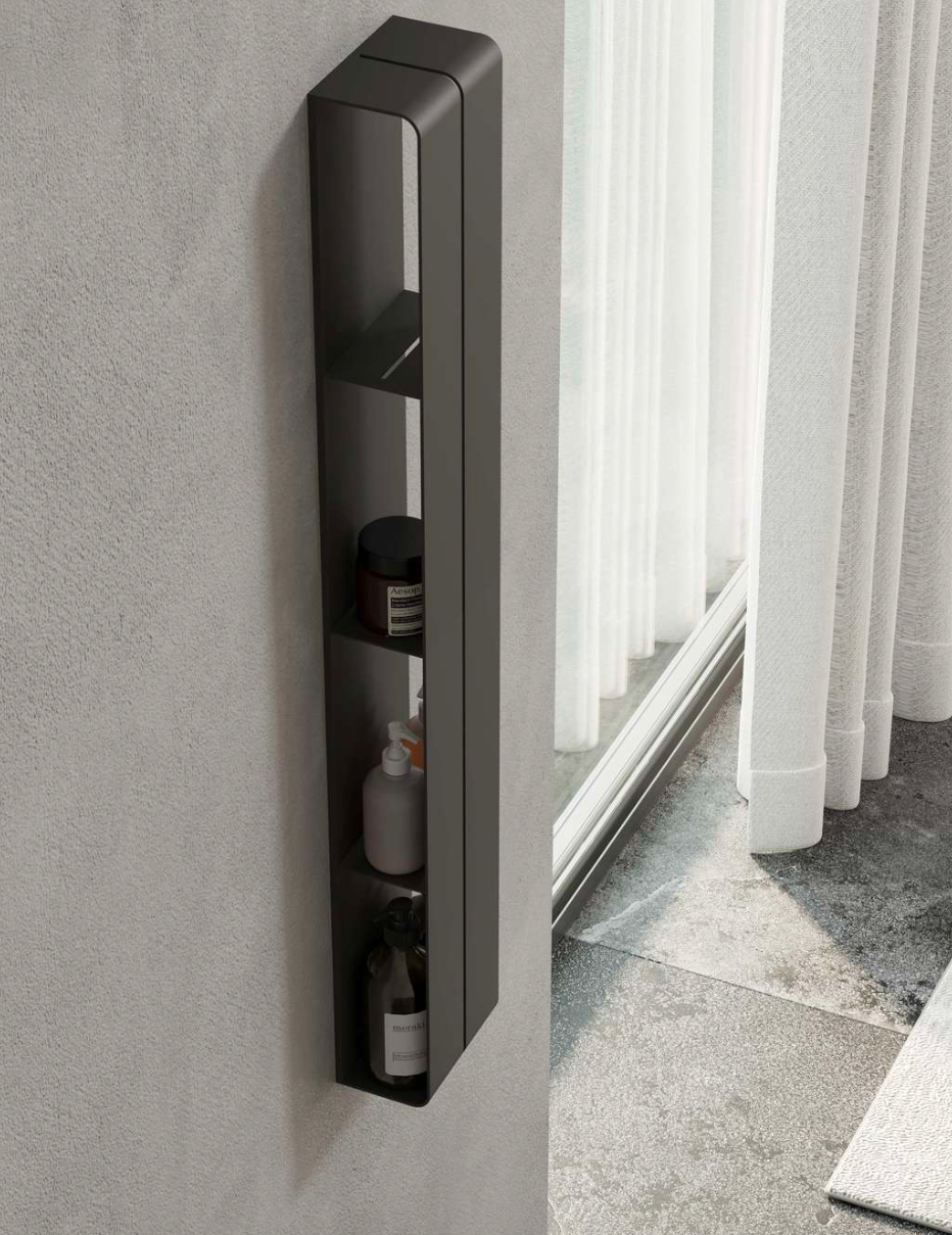 This vertical metal shelf is designed to bring structure and calm to your bathroom, keeping everything within reach β and off the floor.